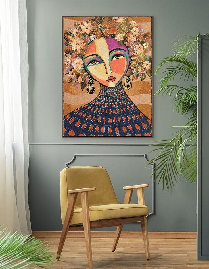 A fun portrait of my friend Camila bursting with colour. Beautiful on its own or paired with Lily and Luna. Original in acrylic on canvas (original not available)